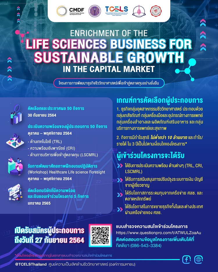 ทีเซลส์ ร่วมกับ กองทุนส่งเสริมการพัฒนาตลาดทุน และ มศว ขับเคลื่อน “โครงการการพัฒนาธุรกิจชีววิทยาศาสตร์เพื่อเข้าสู่ตลาดทุนอย่างยั่งยืน”